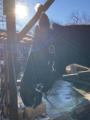 またまた小春日和に恵まれた埼玉県下の、第九の有名な旋律だけが鳴り響く馬場で愛馬オランダの幼稚なおじさんクリトンに騎乗。クリトンの左後肢の状態は相変わらず一進一退で、レッスン中でも刻々と変わって、最初が不調でも乗り続けるうちにガゼン歩様が良くなるケースもあれば、逆に最初は良くても途中から疲たかのように後肢を引きずりがちになる時もあるのが厄介というべきか(-。-;) A子先生も対処に苦慮してらっしゃるし、ベテラン女性インストラクターのN先生も心配して下さっているものの、跛行するところまでは行かないため獣医師のミノワ先生に診てもらう必要はまだない感じで、しばらくは用心しつつ運動は通常通り続行することに。何しろ高齢馬は人間の高齢者と同様、ちょっとでも動かないとカラダが固まってますます動けなくなることを考えての判断で、2鞍目の単独騎乗ではワタシもたいがい高齢で股関節に疼痛が走るにもかかわらず、騎座で支えるようにして乗り続けたところ、途中からクリトンの歩様がガゼン良くなって、下馬後の手入れで蹄の裏掘りをする際も、騎乗前より後肢が上がりやすかったので、やっぱり動かして良かったのかも?と思った次第。とにかく10月頃はまだ試合に出られそうなくらいに歩様が良くなっていたクリトンが、ここに来て急に調子が悪くなったのは気温が下がったせいでもありそうで、要するに人間と同様に冷えると色んな神経痛が出やすいというパターンなのかもしれない。それにしても面白いのは、離れて見ていると何の問題もなさそうに4肢の蹄を床面にしっかり付けて立っているくせに、ワタシやA子先生が近づくと、さもコッチが痛いんですと言わんばかりに左後肢の蹄を持ちあげて見せることで、そのため先生とワタシはこの馬ひょっとしたら仮病を使ってるんじゃないの(-_^:)という疑惑にかられてもいるのでした(^◇^;)ともあれ今年のクリトンは概ね順調で、馬格も良くなったし、径路レッスンも復活できたし、という感じで24歳を無事に乗り切ってくれて、数年前の絶不調時から見たらよくぞ持ち直してくれた一年でした\(^O^)/来年も何とかこの調子をキープし続けてくれたら、と願わずにはいられませんm(__)m