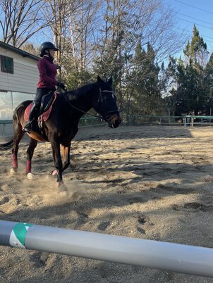 好天に恵まれたかと思いきや昼下がりから突風が吹きまくる荒天になった埼玉県下の馬場で今週末も愛馬オランダの幼稚なおじさんクリトンに騎乗。