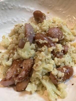 カリフラワーと粗挽きソーセージのレモンマスタード炒め