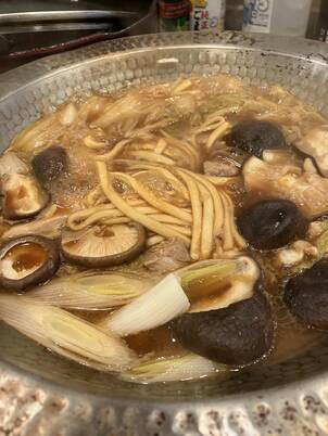 また急に寒くなったのでコレに。先日講演旅行した犬山市でゲットした味噌煮込うどんキットに鶏もも肉、白菜、長ネギ、椎茸を投入して食す。名古屋方面に行くと決まってコレが食べたくなります(^^ゞ