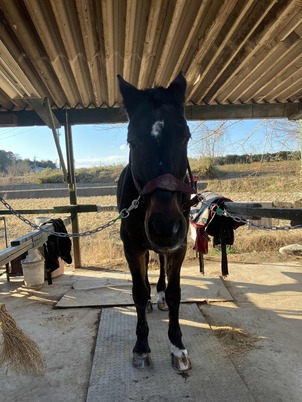 まだ風は冷たくても空は春のパステルカラーに染まった埼玉県下の馬場で、今週末も愛馬オランダの幼稚なおじさんクリトンに騎乗。装蹄明けの今週はいつにまして後肢がしっかり入った馬場馬らしい闊達な歩様で横運動も径路レッスンも順調にこなしてくれたクリトンとはいえ、今年25歳にもなるのにいまだに他馬を毛嫌いして横に来るだけでも耳を伏せて唸り声をあげたり、餌やおやつをねだって馬房の壁をガンガン蹴るクセは一向に直らず(-。-;)やっぱ幼稚な馬としか言いようがないものの、先週の「安楽死」騒動から「こう見えてすごく利口な馬なのかもしれませんよ」とA子先生。「そりゃ一応セントジョージ賞典の径路まで踏んでた馬場馬術馬なんですから、そこそこ頭イイ馬だったんだとは思いますけど、とてもそうは見えませんよねえ」とワタシ(^_^;) そんなクリトンが手入れで最近ハマッてるのは額をぽんぽんと軽く叩かれることで、最初はこぶしで何げに軽く叩いたら、だんだん首を垂れて口をくちゃくちゃさせる馬ならではのリラックスモードに突入し、とにかく気持ちよさそうなので、他の馬にもやってみて下さい!と会員さんに勧めたところ、拒否する馬もあったけれど、会友のKさんがデカ鹿毛セン馬のオー君にしたらオー君もたちまち同様のリラックスモードになったので「松井さん、コレは凄い発見ですよ!」とKさん。それにしても人間なら頭の疲労を癒やすスカルプマッサージとかあるけど、馬にも同じような癒やし効果があるんだろうか(?_?)馬に接する機会がある方はゼヒお試しになってみてください(^-^)/