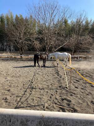 またまた春ホンバンの今週末も埼玉県下の馬場で愛馬オランダの幼稚なおじさんクリトンに騎乗。クリトンは春の陽気に浮かれちゃったのか、レッスン前の放牧で引き綱を付けたまま馬場をグルグル駈け回ってA子先生を手こずらせ「こんなに暴れたんだから、レッスンでもちゃんと動かなきゃダメよ!」と先生に釘を刺されてハーフパスや径路もしっかりこなしてくれたし、2鞍目の単独騎乗でも闊達に動いてくれたものの、下馬して馬装を解いた途端にゴロンと横になってグウグウイビキをかき出す始末(^0^;)しばらくして目覚めた後に放牧場を替えたところ、今度は隣に放牧されていたデカ芦毛のアーサー君と互いを嗅ぎ合いながらブヒー、ブヒーと甲高い雄叫びをあげ続けて周りを呆れさせ「クリトン自由過ぎる!」と会友のKさんに言われちゃったのでしたσ(^◇^;)