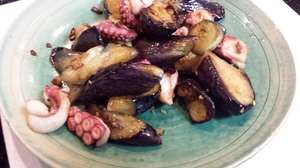QPで見た料理。ナスは乱切りして塩を振り、しばらく置いてしんなりさせ、水気を絞ってから少なめのオリーブ油で炒め、ニンニクのみじん切りと鷹の爪の輪切り、薄切りしたタコを炒め合わせてアンチョビーをいれて味付けする。仕上げに胡椒とイタリアンパセリのみじん切り(私はカット)を振りかける。晩ご飯のおかずというよりも、ワインのおつまみにオススメ!ダウンサイジングがやっと出来るようになって、今日からPHOTOアップしました(*^^)v