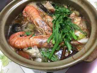 QPで見た料理。煮干しと昆布の出汁で白菜と春雨を煮て塩醤油胡麻油少々で調味し、鶏もも肉の唐揚げを加えただけ。おろし生姜を添えて食す。白菜は芯を細切りにして先に煮ること。鶏もも肉は塩酒胡椒でふつうより薄めに下味してカタクリ粉も薄くまぶして揚げること。私は油少なめに揚げ炒めした。春雨がスープを吸って美味しいし、シンプルな材料で簡単に出来て何よりリーズナブルなお鍋です(*^^)v