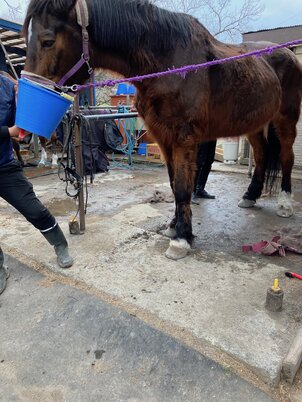 気温はそこそこなのに強い北風が吹きつけて体感温度低めの今週末も埼玉県下の馬場で愛馬オランダの幼稚なオジさんクリトンに騎乗。クリトンの好調はキープされつつも、今週は雪が降ったりして各所に水たまりが残るような重馬場のせいか、どの馬も重めだったようでクリトンも例外でなく、それでもA子先生に騎乗されていると、この馬ヤッパ競技馬だよな〜と感じさせる姿を見せられるようになってきたのは何より(*^^)v だが、馬場馬らしく復調したクリトンのハンパない反動で騎乗するのもヤッパ大変で(^_^; とにかく乗馬は常に馬にまっすぐ乗るのがキホンとはいえ、反動の大きな馬で常に人体をまっすぐキープするのがいかに大変かをご存じの方も多いだろうと思う。A子先生でさえ「いや〜クリトンが快復してきたら、こっちの腹筋が鍛え直されますね〜」とのことだから、ワタシなんかは1鞍乗っただけもうヘトヘトなのだけれど、高齢馬の健康維持をかねて今日も単独騎乗で2鞍目を何とかこなして、馬場で馬装を解いてそのまま放牧したところ「あっ、そこじゃダメー!!!」と叫ぶ間もなく馬体がゴロンとし、半身泥パック状態でアフリカの動物みたいになってしまい(-。-;)最初は泥を乾かしてブラシでこそぎ取ろうとしたものの、ブラシじゃとても埒が明かず、結局お湯で洗い流してタオルで乾かすはめに。何せお腹を冷やして疝痛になられでもしたら事なので、懸命にお腹をさすって乾かしたら、それがいいマッサージになったのか、ワタシの目の前で大量のボロを2回もしてくれたので安心してクラブを引き揚げられました(^0^;)