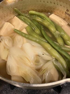 しっとり煮は今日のQPで見た料理。酒砂糖味醂で調味した出汁で戻して切った高野豆腐を煮て、斜め切りした長ネギと塩茹でして縦半分に切ったインゲンを加え、淡口醤油と生姜汁と塩少々で調味して10分ほど煮ただけ。このところカロリー過剰なので今日のQPはあっさりした料理で助かった!と思ったのに、これだけだとやっぱり物足りないので市販のレトルトカレーまで食べてしまったワタシ(^^ゞ