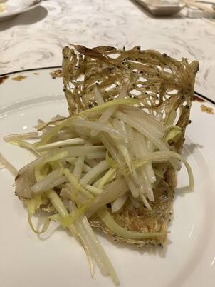 フカヒレの刺身、フカヒレと蟹肉のスープ、フカヒレの野菜炒め、フカヒレの醤油煮込み、フカヒレ蟹味噌入りソバ、杏仁豆腐のフカヒレ添え