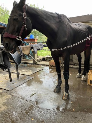 10月にしては蒸し暑っぽい感じだった今週末も埼玉県下の馬場で愛馬オランダの幼稚なおじさんクリトンに騎乗。人間もやっと衣更えの時期を迎えたように馬たちも換毛期に突入し、徐々に黒っぽくなってブラッシングしたら綿毛ぼこりが舞うクリトンは、A子先生の下乗りで絶好調を示していて、久々にMamiさんにも乗って戴いたらサクサク速歩していたものの、ワタシが騎乗した段階では少し疲れが出たのか稍重な感じだったので、ほんの少し前寄りに騎乗して脚を使いムチを当てたら頑張ってスピードを出してくれたのだけれど、最後に径路走行をしていたら、馬場砂の偏りで深い穴みたいになっている場所に足を取られて左前肢がガクッとし、その後は跛行まで行かないものの軽い捻挫をしたらしく、下馬後に触診したら明らかに熱感があったので久々にレグソーカーして脚を冷やした上で泥パックして厩舎に戻した次第。そんなわけで2鞍目の単独騎乗では、痛みはほとんどなさそうだったが、用心のため常歩に終始して来週の騎乗に備えることに。いやはや好事魔多しとはこのことかと思われるような今週のクリトンでした(-.-;)y-゜゜